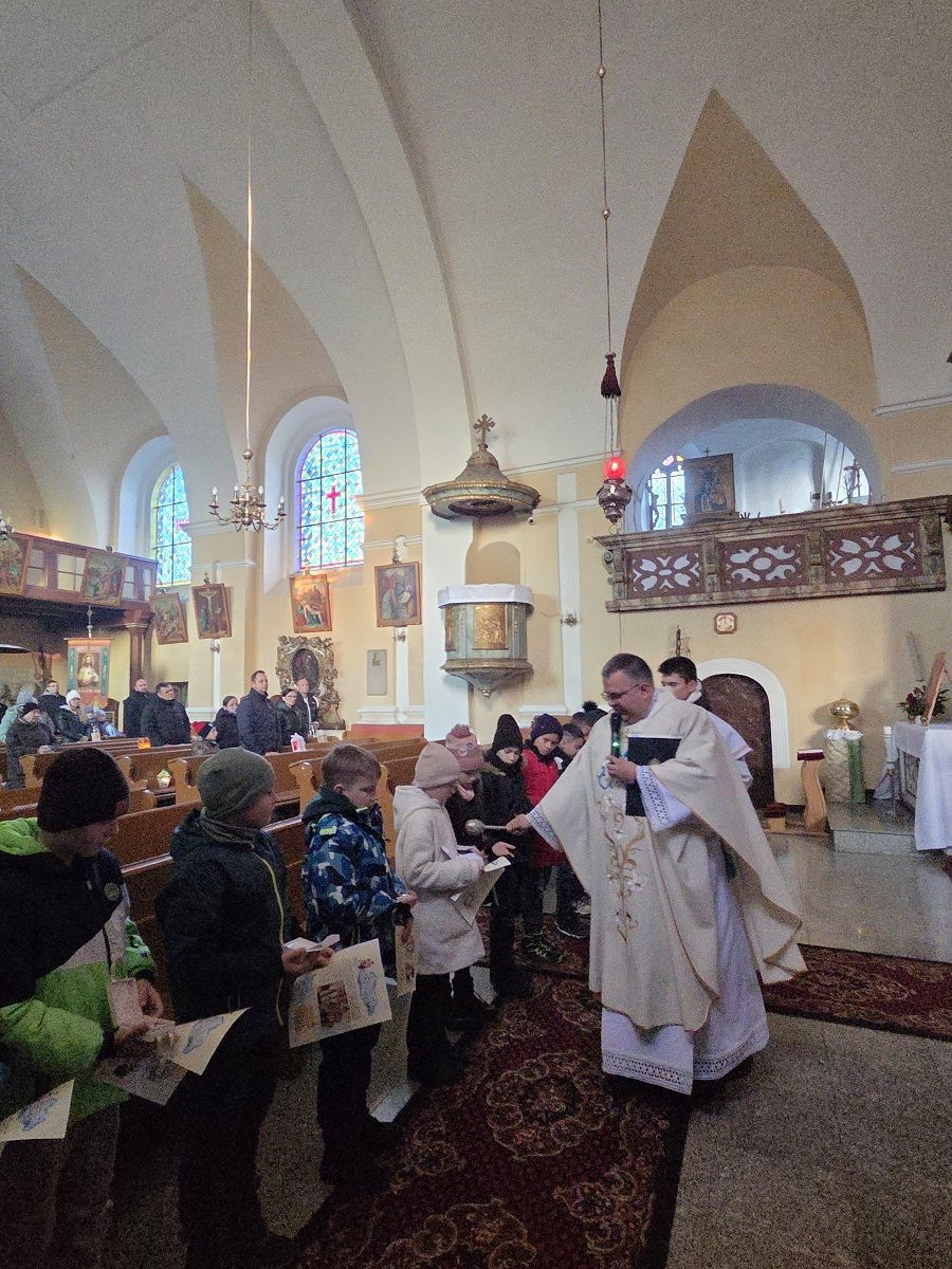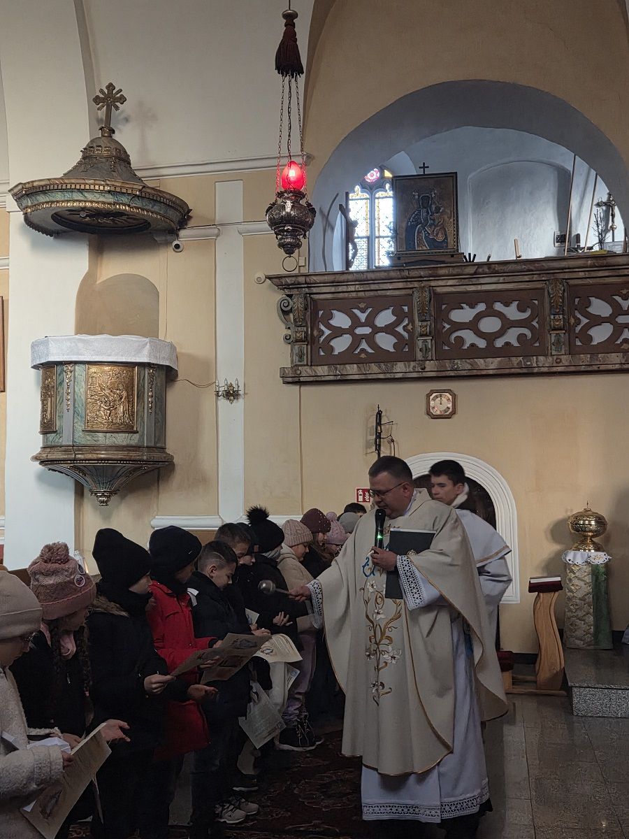 Podczas homilii Ks. Proboszcz przypomniał dzieciom, że czas Adwentu to czas radosnego oczekiwania i duchowego przygotowania na narodziny Jezusa Chrystusa, na Boże Narodzenie.