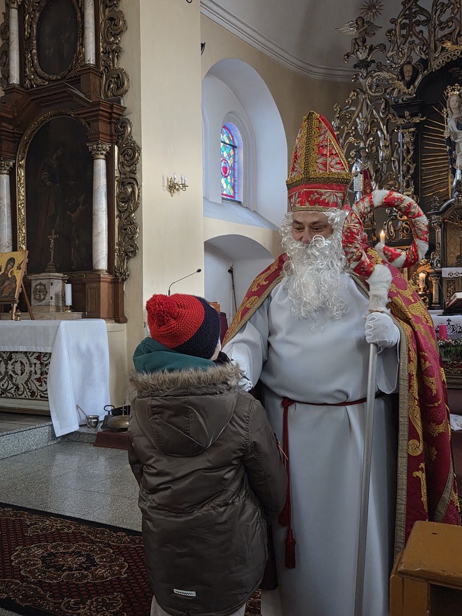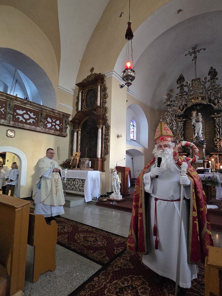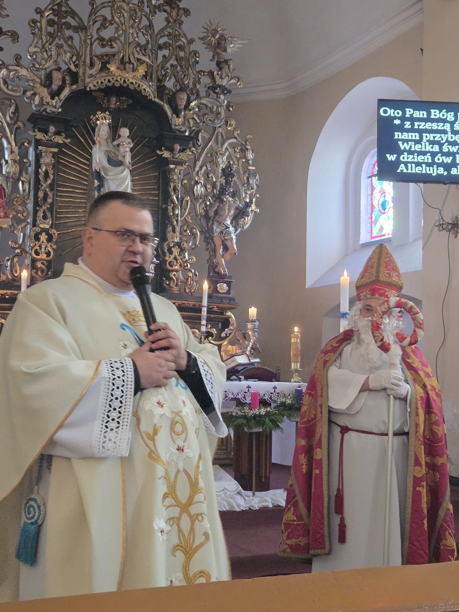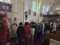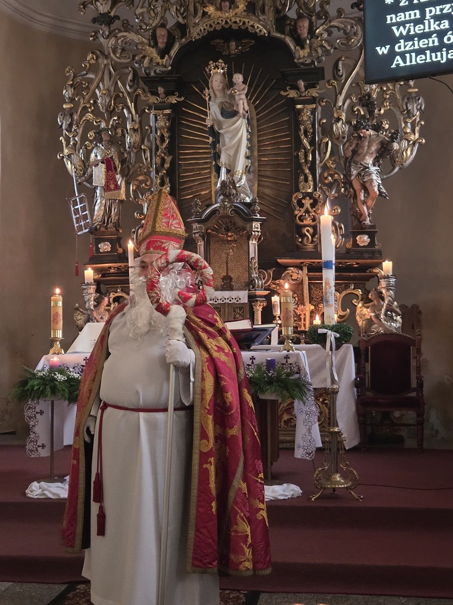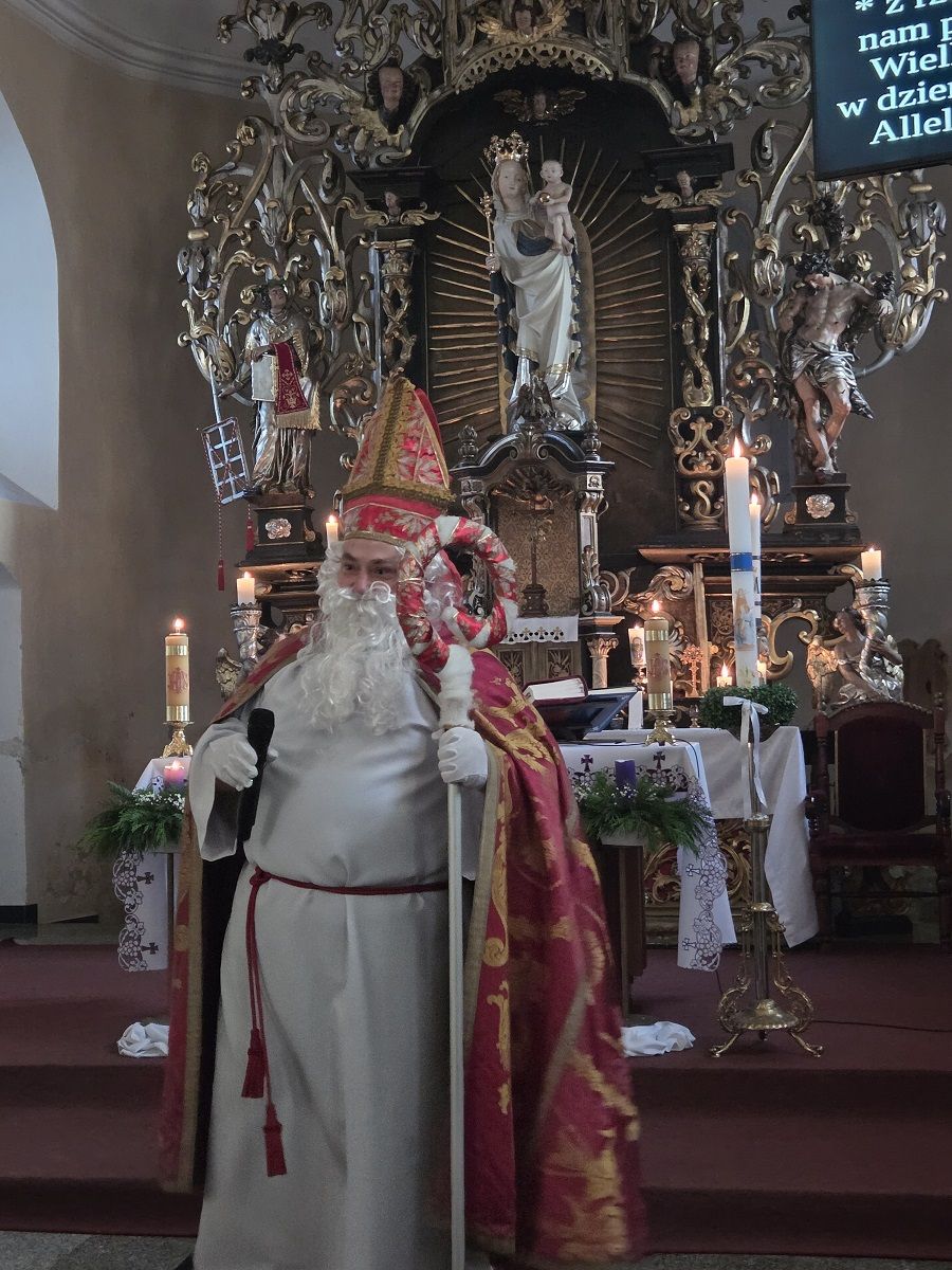 Na zakończenie dzisiejszych rorat dzieci miały okazję spotkać się z prawdziwym św. Mikołajem - biskupem Miry, który każdemu dziecku wręczył upominki.