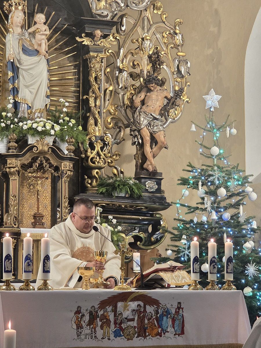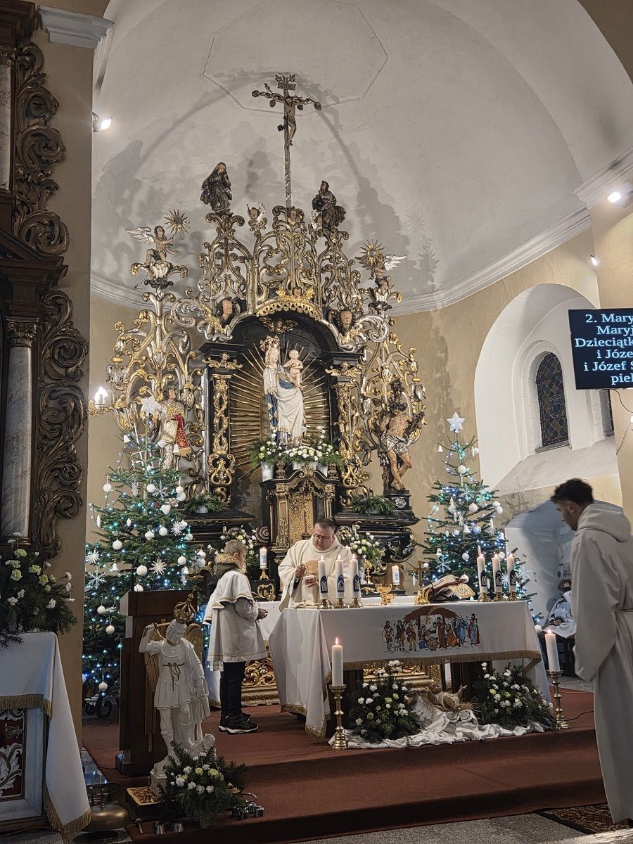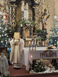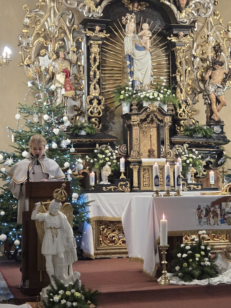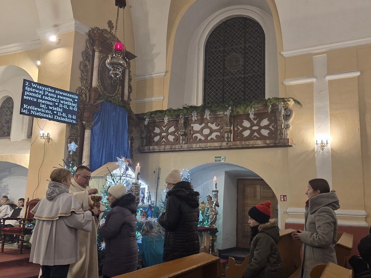 W pięknej homilii Ks. Proboszcz przypomniał wiernym, że: "Rodząc się jako Dziecko - Bóg stał się Emmanuelem - Bogiem z nami, od którego nie oddziela nas żaden dystans wysokości i oddalenia. Bóg dał człowiekowi bezpośredni dostęp do dziecięcego serca, przez co stał się tak bliski, dzięki czemu można mówić do Niego "TY". Boże Narodzenie to przyjście Mesjasza, który odnawia świat i jedna ludzi z Bogiem. Jezus Chrystus, Bóg-Człowiek, zjednoczył ziemię i niebo, nierozerwalnie pojednał człowieka z Bogiem, sprawiając, że człowiek stał się dzieckiem Boga."