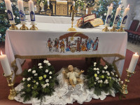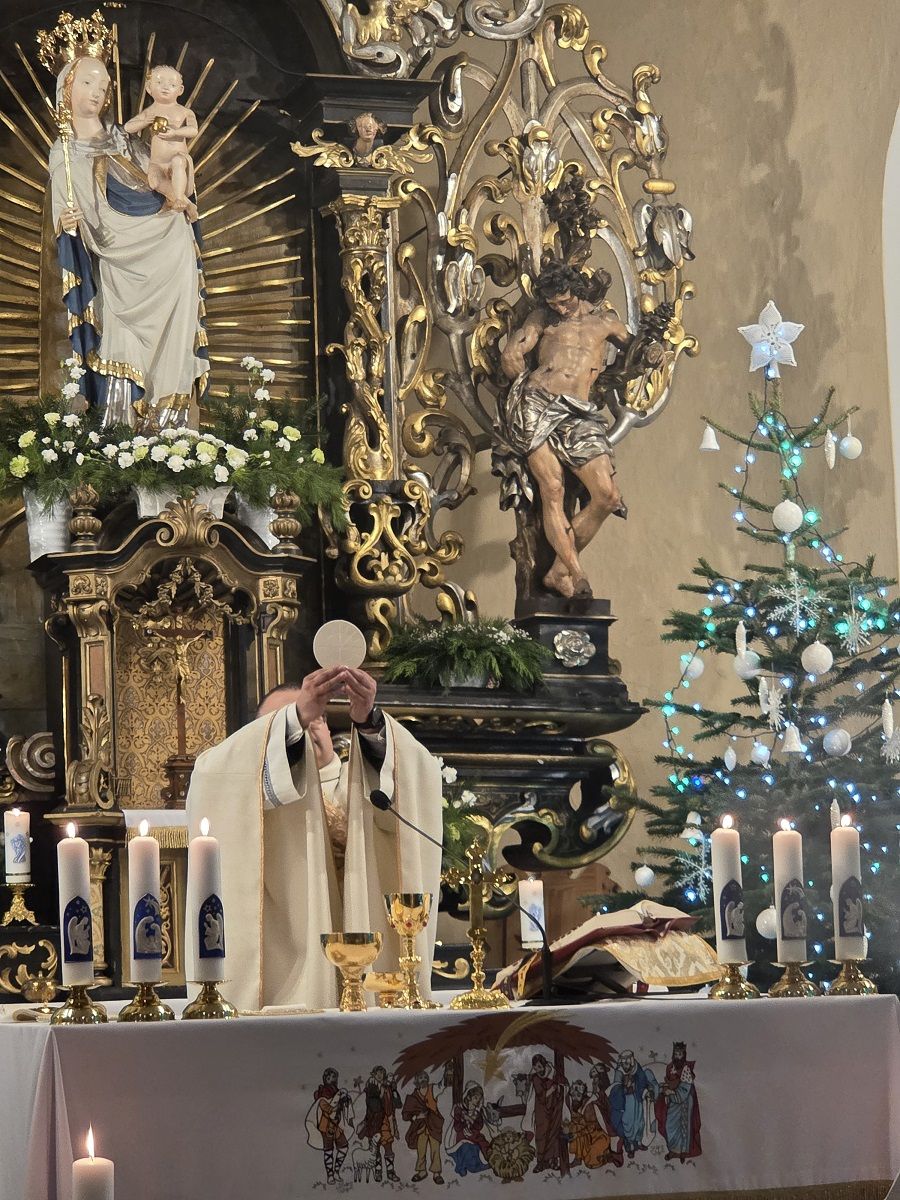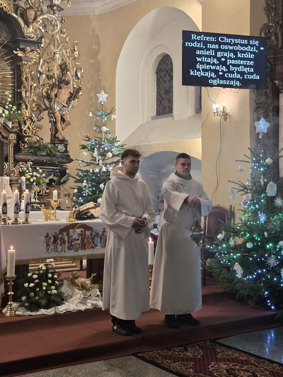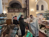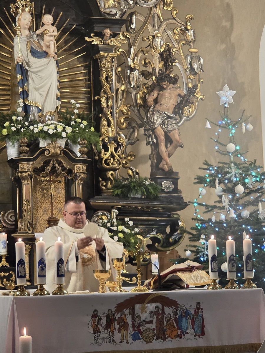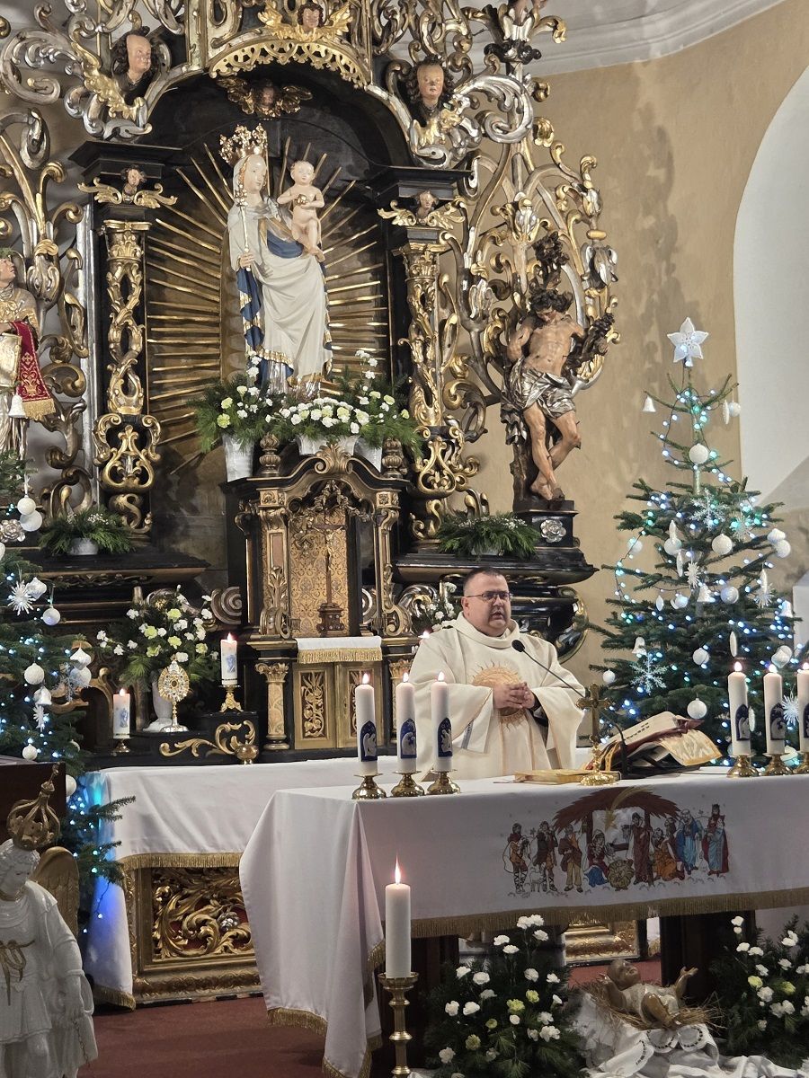 W pięknej homilii Ks. Proboszcz przypomniał wiernym, że: "Rodząc się jako Dziecko - Bóg stał się Emmanuelem - Bogiem z nami, od którego nie oddziela nas żaden dystans wysokości i oddalenia. Bóg dał człowiekowi bezpośredni dostęp do dziecięcego serca, przez co stał się tak bliski, dzięki czemu można mówić do Niego "TY". Boże Narodzenie to przyjście Mesjasza, który odnawia świat i jedna ludzi z Bogiem. Jezus Chrystus, Bóg-Człowiek, zjednoczył ziemię i niebo, nierozerwalnie pojednał człowieka z Bogiem, sprawiając, że człowiek stał się dzieckiem Boga."