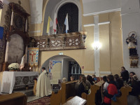 W modlitwie wiernych zdromadzeni usłyszeli: "Módlmy się za zmarłych z naszych rodzin, za poleconych nam w wypominkach, za zmarłych, którzy tutaj się modlili i pełnili posługę kapłańską, aby zmartwychwstali do nowego życia i na zawsze przebywali z Panem. Ciebie prosimy ,,,."